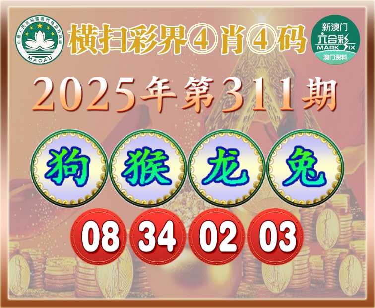 311期:【横扫彩界】 ④肖④码【狗猴龙兔】【08.34.02.03】开:00准