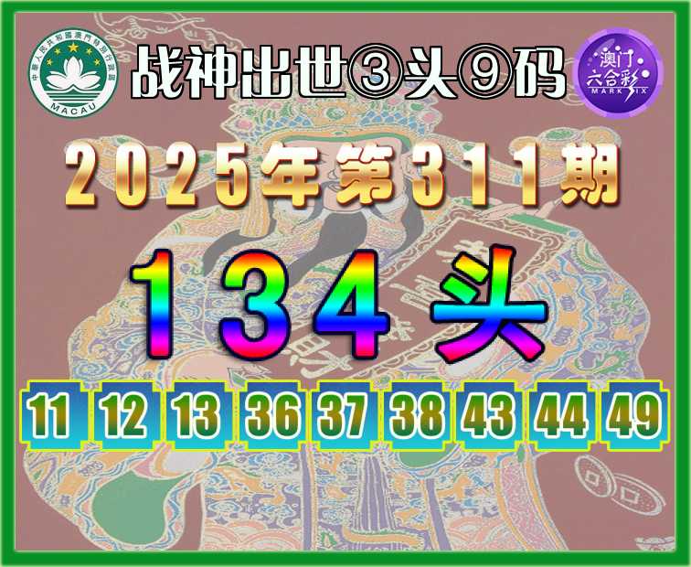 311期:『战神出世』 ③头⑨码【134头】开:00准