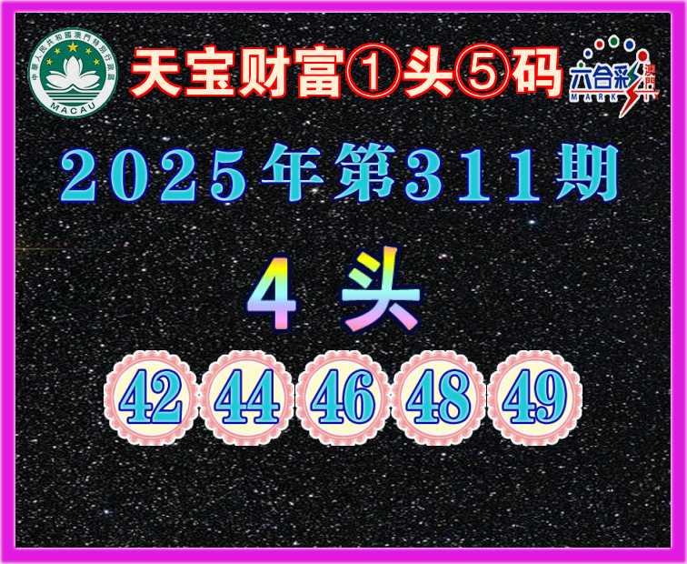 311期:『天宝财富』 ①头⑤码【4头主:42.44.46.48.49】开:00准