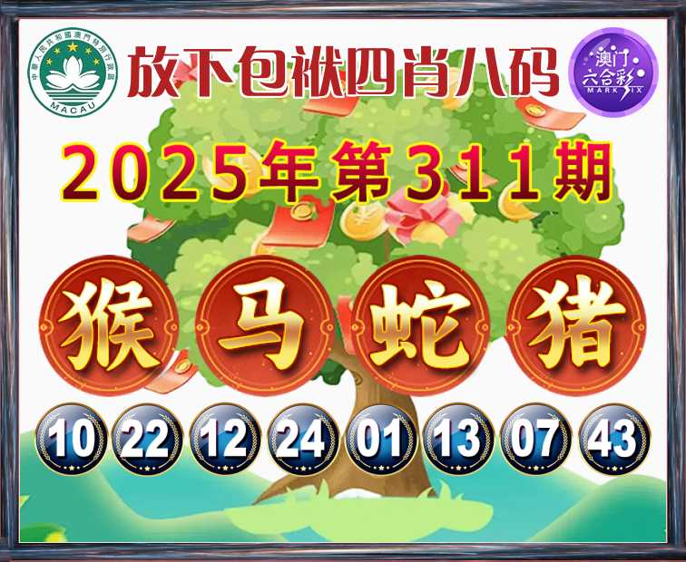 311期: 『放下包袱』 四肖八码【猴马蛇猪】开:00准