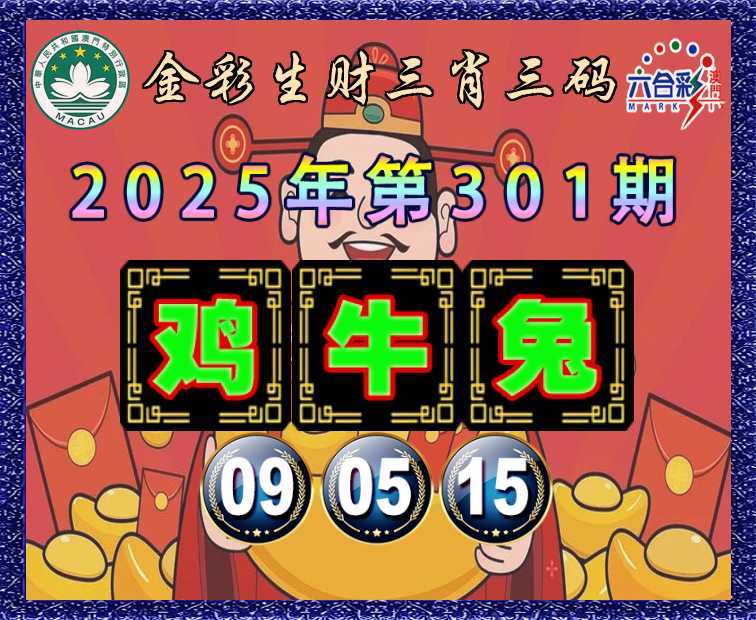 301期:【金彩生财】 三肖三码【鸡兔】【09.05.15】开:牛05