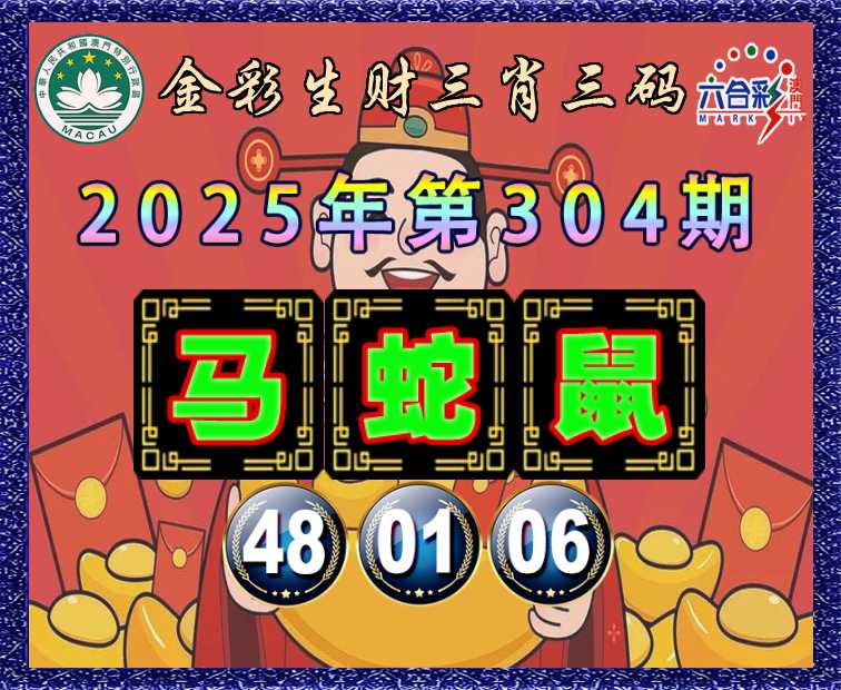 304期:【金彩生财】 三肖三码蛇鼠】【48.01.06】开:马48