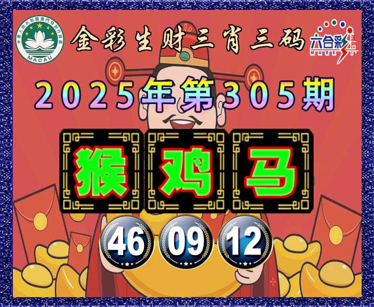 305期:【金彩生财】 三肖三码【猴鸡马】【46.09.12】开:鼠42