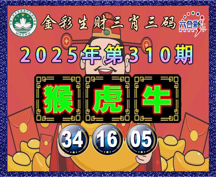 310期:【金彩生财】 三肖三码【猴牛】【34.16.05】开:虎16