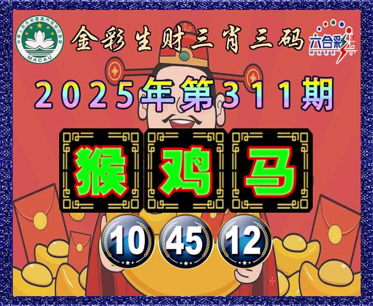 311期:【金彩生财】 三肖三码【猴鸡马】【10.45.12】开:00准